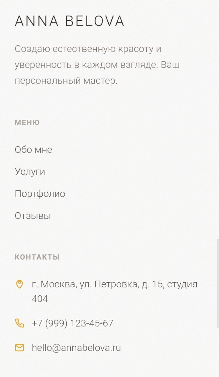 Портфолио, услуги, контакты, запись — всё собрано в одной точке, которую удобно показать клиенту.